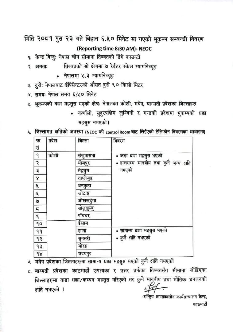 In response to the earthquake, Nepal’s Prime Minister KP Sharma Oli urged citizens to remain alert and adopt safety measures. He emphasized the importance of preparedness, noting the recent seismic activities in the region.