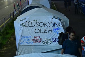 Despite facing challenges, including rain and police interference, the sit-in continued for six days outside the US Embassy, with Palestinian and Malaysian flags flying high, and placards denouncing the embassy as a “nest for terrorists.”